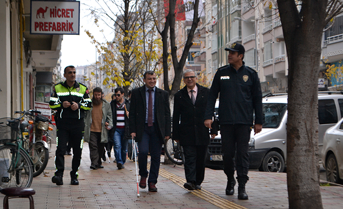 Bafra ilçesi Bafra Görme Engelliler Derneğinden başlayan yürüyüşe İlçe Emniyet Müdürü Süleyman Gökay Gökdoğan, Dernek Başkanı Mustafa Kaplan, emniyet mensupları ve dernek üyeleri katıldı. 3 Aralık Dünya Görme Engelliler Günü öncesinde yapılan etkinlikte engelli sorunlarına dikkat çekmek, toplumsal farkındalık oluşturmak, görme engelliler için hayati önem taşıyan kaldırımlarda bulunan sarı çizgilerin vatandaşlar tarafından işgal edilmemesi rampaların eşya ve araç ile kapatılmaması gibi konulara vurgu yapıldı. Emniyet Müdürü Gökdoğan, ve Dernek Başkanı Mustafa Kaplan, kaldırıma eşya bırakan vatandaşları uyararak bu konuda daha dikkatli olunmasını istedi.