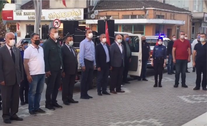 Hükümet Konağı önünde Kaymakam Cevdet Ertürkmen, Belediye Başkanı Hamit Kılıç, İlçe Jandarma Komutanı Üsteğmen Fatih Özer, İlçe Emniyet Müdürü Bünyamin Temur, İlçe Milli Eğitim Müdürü Mehmet Ali Katipoğlu, Gençlik ve Spor İlçe Müdürü Osman Şenoçak, siyasi parti temsilcileri, daire amirleri, askeri erkan ve polis ekipleri saat 19:19'da hep bir ağızdan İstiklal Marşı'nı seslendirdi. İstiklal Marşı'nın okunmasının ardından polis, asker ve zabıta ekipleri ile vatandaşların katılımıyla oluşturulan konvoy siren sesleri ve marşlar eşliğinde ilçe turu attı. Türk bayrağı asılı balkonlarda vatandaşlar, 19 Mayıs Atatürk'ü Anma, Gençlik ve Spor Bayramı coşkusunu yaşadı.