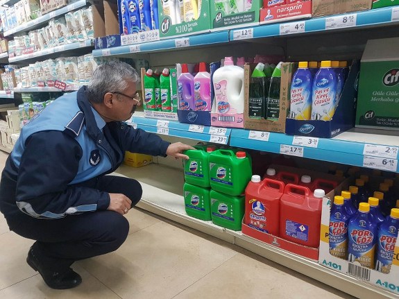 Özellikle kolonya, sabun gibi hijyen ürünleriyle uzun ömürlü gıdaların yer aldığı rafları kontrol eden ekipler, fiş ve fatura kontrollerinde de bulunuyor.