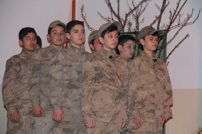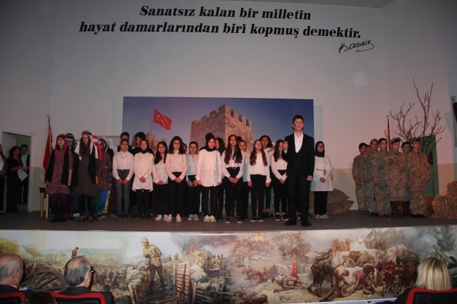 Program Saygı duruşu ve İstiklal Marşının okunmasıyla başladı. Günün anlam ve önemini belirten konuşmayı okul Sosyal Bilgiler öğretmeni Gökmen Karagöl yaptı. Karagöl konuşmasında, "İstiklal Marşı'nın değerini anlamak için bizim tarihimizin nasıl kırılmalarla dolu olduğunu hatırlamak gerek. Savaşlar, işgallerle dolu bir ülke değiştirilmeye çalışılmıştı. Milli Mücadele ruhunun tam ifadesi olan İstiklal Marşı'mız bir asırdır aynıdır; yüreklerimizde yeri bayrağımız gibi değişmeden aynen devam edecektir.