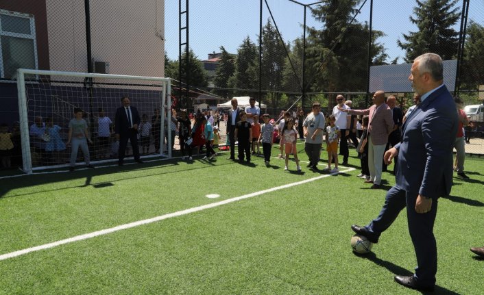 Samsun'un 19 Mayıs ilçesinde Cumhuriyet İlkokulu'nda yapımı tamamlanan halı sahanın açılışı yapıldı.