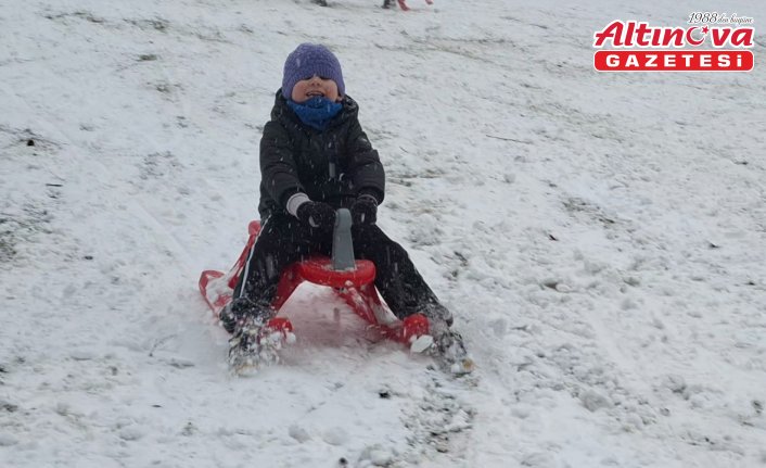 Karın tadını özellikle çocuklar çıkardı. Plastik kızaklarla kayan çocuklar keyifli vakit geçirdi.