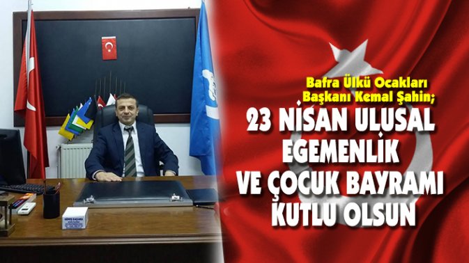 23 Nisan Ulusal Egemenlik ve Çocuk Bayramı nedeniyle bir mesaj yayınlayan Bafra Ülkü Ocakları Başkanı Kemal Şahin mesajında "Gazi Mustafa Kemal Atatürk’ün çocuklara armağan ettiği 23 Nisan Ulusal Egemenlik ve Çocuk Bayramını kutlamanın mutluluğu içerisinde olduğumuzu belirtmek isteriz.