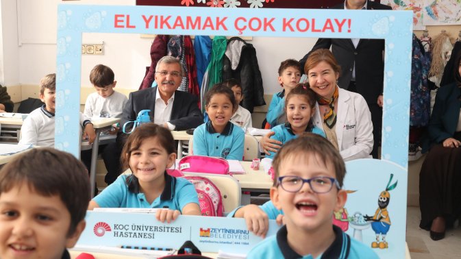 Zeytinburnu Belediyesi ve Koç Üniversitesi Hastanesi iş birliğiyle bu yıl 2.’si düzenlenen “Dünya El Yıkama Günü” etkinliğinde 1. sınıf öğrencilerine el yıkama seti dağıtıldı. Temizlik alışkanlıklarının küçük yaşta daha kolay kazanıldığına dikkat çeken Zeytinburnu Belediye Başkanı Murat Aydın, ilçedeki 14 ilkokulun 1. sınıflarını kapsayan hijyen projesinde 5 bin adet set dağıtılacağını söyledi.