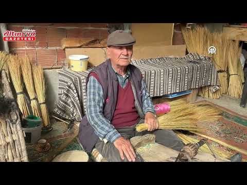 80 yaşındaki Yıldırım, kendi kendine öğrendiği süpürge yapımını 15 yıldır sürdürüyor