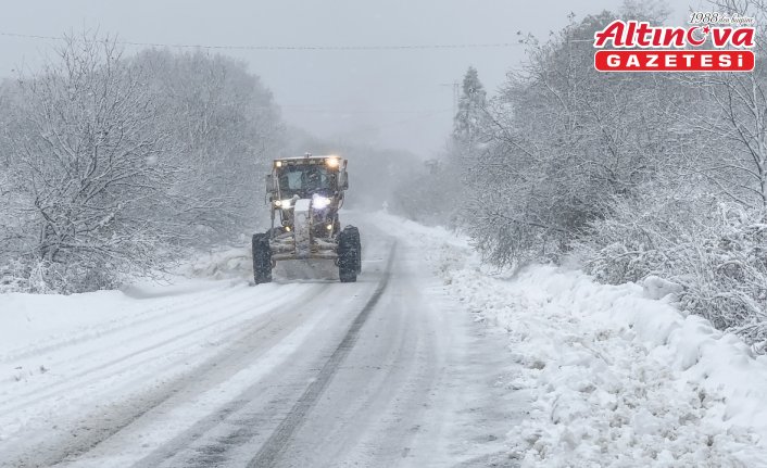 Karayolları ekipleri, güzergahta ulaşımın aksamaması için karla mücadele çalışmaları gerçekleştirdi.
