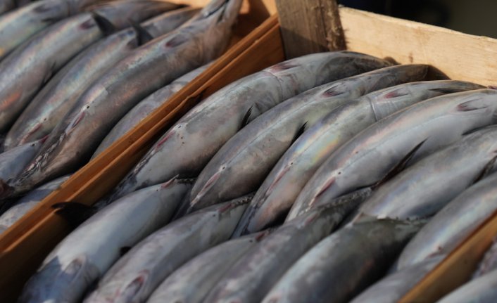 Akçakoca'da balıkçı tezgahlarında palamudun 3 tanesi 200 liradan alıcı buluyor. DÜZCE (AA)