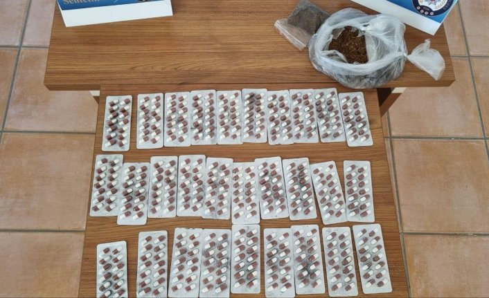 Adreste yapılan aramada 251 gram uyuşturucu emdirilmiş tütün ile 406 sentetik ecza hapı ele geçirildi.