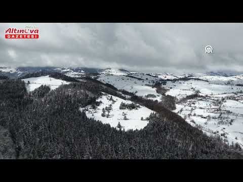 Alaçam'da karla kaplı Kızlan Yaylası dronla görüntülendi