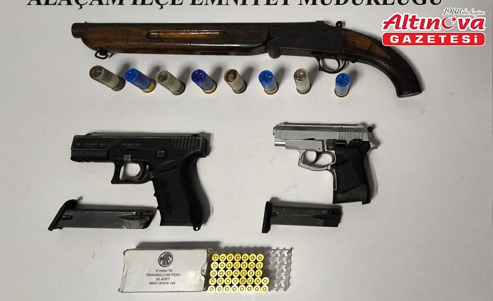 Samsun'un Alaçam ilçesinde bir evde arama yapan polis, 2 kuru sıkı tabanca, ruhsatsız av tüfeği ve mermi ele geçirdi.