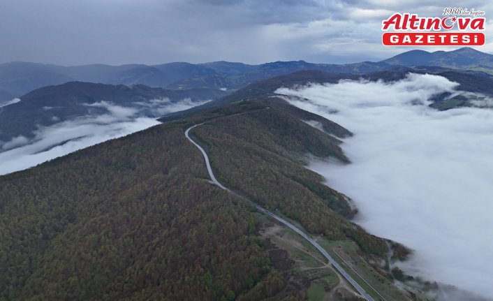 Alaçam ilçesi Kızlan Yaylası'ndaki Alaçam-Durağan yolu yoğun sisle kaplandı.