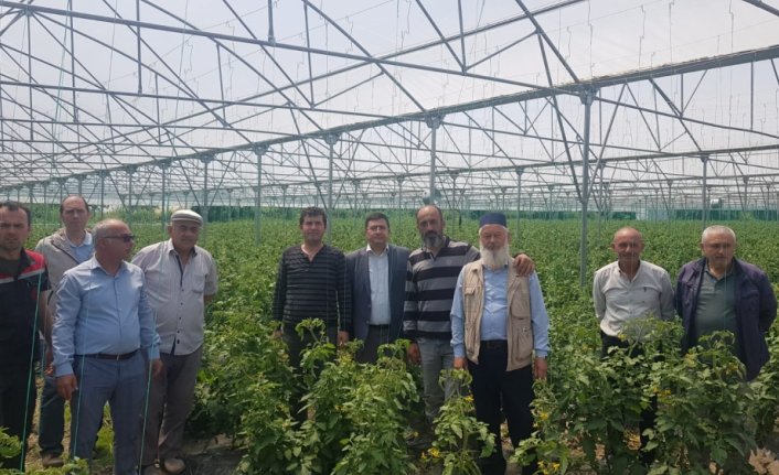 Alaçam Kaymakamı Fikret Zaman, ilçede serada üretim yapan çiftçileri ziyaret etti.