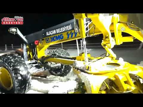 Alaçam ilçesinde karla mücadele çalışması yapıldı