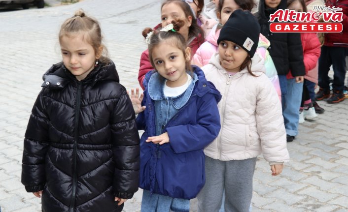 Ailelerin de destek verdiği çalışmada, sınıfın 5 yaşındaki 19 öğrencisi, okul müdürü ve öğretmenleri eşliğinde Üçler Mahallesi'ndeki bakkala gitti.