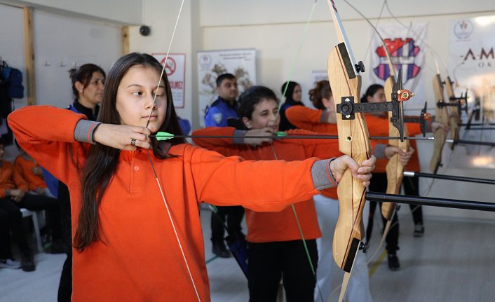 Amasya Spor Salonu'ndaki kursa katılan 15 çocuğa antrenörler Çocuk ve Gençler Sosyal Koruma Destek Programı (ÇOGEP) kapsamında yaklaşık 2,5 ay süreyle okçuluk öğretildi.