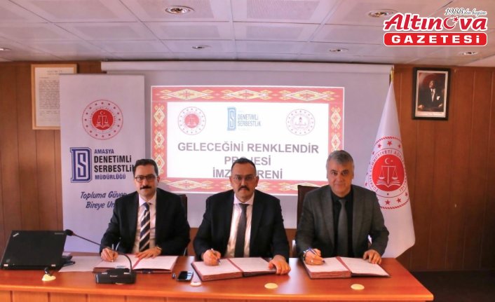 Amasya'da denetimli serbestlik kapsamındaki yükümlülerin topluma kazandırılması amacıyla hazırlanan "Bağımsız Sanatlar Atölyesi" ve "Geleceğini Renklendir" projeleri için iş birliği protokolü imzalandı.