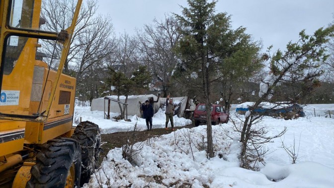 ANTALYA (AA) - Antalya'nın Akseki ilçesinde etkili olan kar nedeniyle yaylada mahsur kalan aileye, yollar greyderle temizlenerek ulaşıldı.