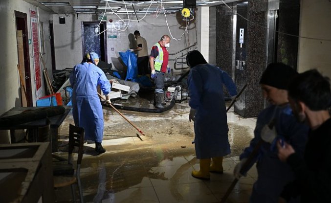 Trabzon'da taşkından etkilenen devlet hastanesinde hummalı çalışma