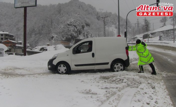 Artvin'de kar yağışı nedeniyle kara yolunda ulaşım aksadı.