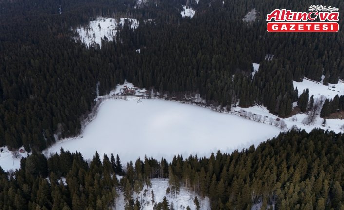 Doğal güzelliğiyle her mevsim yerli ve yabancı ziyaretçilerin ilgi gösterdiği Karagöl Sahara Milli Parkı içerisindeki göl, kar yağışının ardından beyaza büründü.