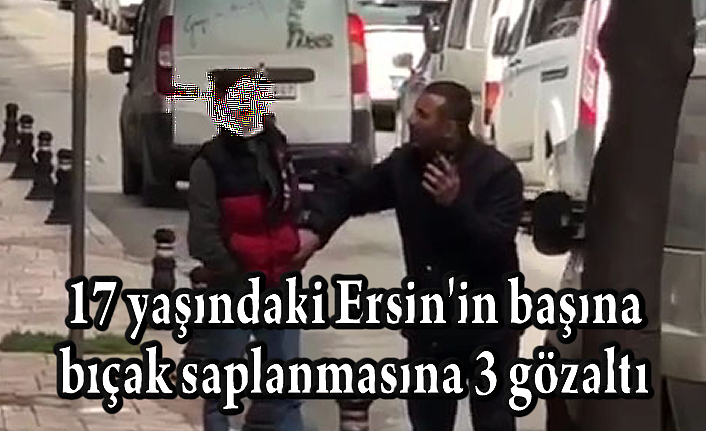 Samsun'da, dün sokak ortasında Ersin A.’nın (17) dövülüp, başına bıçak saplanmasıyla ilgili polis ekiplerince yapılan çalışmada yaşı 15- 17 arasında olan 3 şüpheli gözaltına alındı. Olayın sonrasına ait yeni görüntüler de ortaya çıkarken, Ersin'in hayati tehlikesinin devam ettiği öğrenildi.