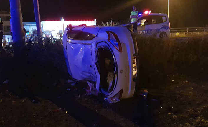 Bafra Girişi Hastane Kavşağında aracın kontrolünü kaybeden sürücü takla atarak elektrik direğine çarptı.