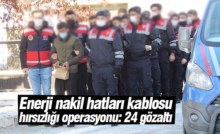 Enerji nakil hatları kablosu hırsızlığına yönelik operasyonda 24 kişi gözaltına alındı. Zanlılarla 4 bin metre bakır telefon kablosu, 13 cep telefonu, 20 SIM kart, flaş bellek ve hafıza kartları ele geçirildi.