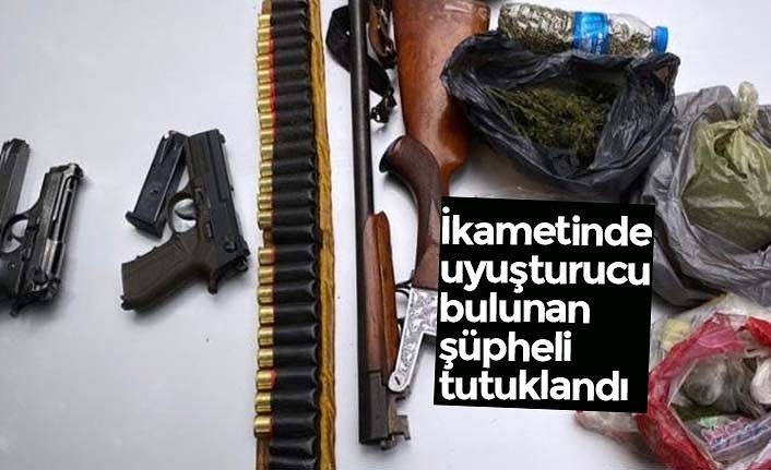 Şüphelinin ikametinde düzenlenen operasyonda arama yapan ekipler, 301,05 gram esrar, 150 gram kenevir tohumu, hassas terazi, ruhsatsız tabanca, kurusıkı tabanca, av tüfeği, tüfek kartuşu ve 4 tabanca fişeği ele geçirdi.