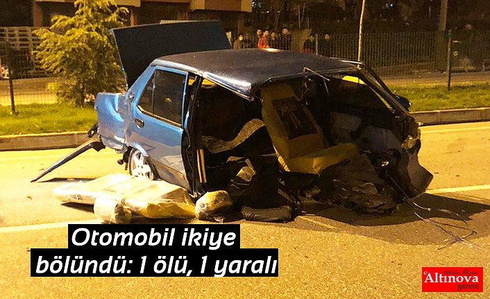 Samsun'un Vezirköprü ilçesinde refüje çarparak ikiye bölünen otomobildeki 2 kişiden biri öldü.