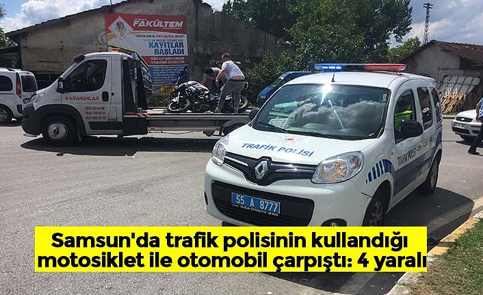 Samsun'un Çarşamba ilçesinde polis motosikleti ile otomobilin çarpışması sonucu 4 kişi yaralandı.