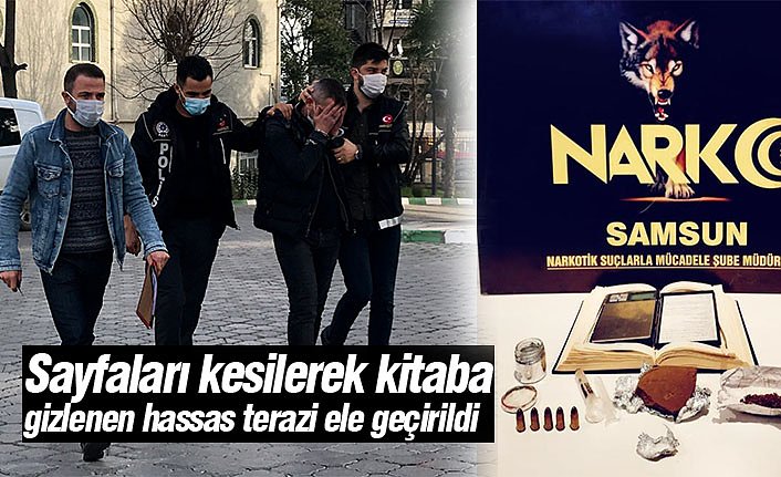 Samsun'da düzenlenen operasyonda, bir miktar uyuşturucu ile sayfaları kesilerek kitap içine saklanan hassas terazi ele geçirildi.