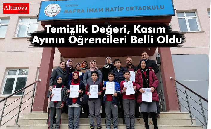 Bafra İmam Hatip Ortaokulu' nda; öğrecilerin temizlik konusunda dikkatlerini çekmek, onları sınıflar ve okul düzeyinde daha temiz ve hijyenik ortamlara daha çok alıştırmayı hedefleyen " Temizlik Değeri ", Kasım ayının öğrencileri belli oldu.