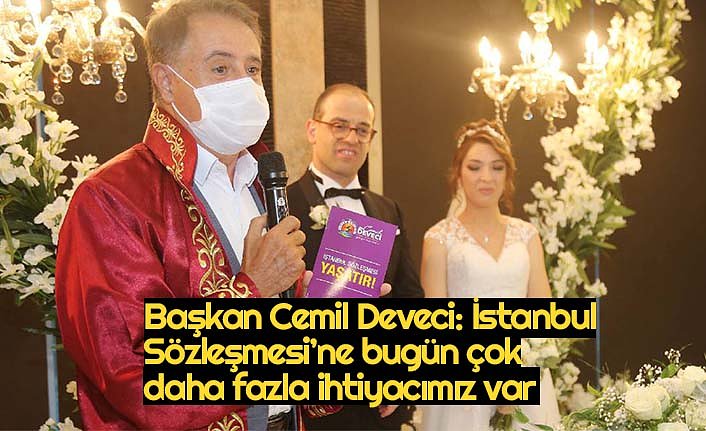 Kıydığı nikahlarda gelin ve damat ile birlikte tüm konukları İstanbul Sözleşmesi hakkında bilgilendiren Atakum Belediye Başkanı Av. Cemil Deveci, Türkiye’de 6284 sayılı Ailenin Korunması ve Kadına Karşı Şiddetin Önlenmesine Dair Kanun’a rağmen kadına yönelik şiddet ve kadın cinayetlerinin önlenemediğini söyledi. Başkan Deveci, “İstanbul Sözleşmesi’ne bugün çok daha fazla ihtiyacımız var. Mustafa Kemal Atatürk’ün bugün medeni toplumlar arasında geçen Avrupa ülkelerinin önemli bir bölümünden daha önce Türkiye’de kadını erkekle eşitleyen, kadının haklarını eksiksiz anayasal konuma getiren, büyük devrimlerimizden biri olan Türk Medeni Kanunu ile zaten bizim kadınımız haklarını almıştı ve o günden bu tarafa kullanmaktaydı. Onun dışında uluslararası bir sözleşme olan İstanbul Sözleşmesi’ne dayalı olarak oluşturulmuş, onu tescilleyen 6284 sayılı yasaya sahibiz. Ama buna rağmen her gün bir kadın cinayeti işleniyor. Son 20 yıldır kadınlar kocası tarafından, abisi tarafından, akrabası tarafından katlediliyor. Bu konuda duyarlılık yaratmak durumundayız. Ben Atakum Belediye Başkanı olarak her nikahta hem İstanbul Sözleşmesi kitapçığını evlilik cüzdanı ile birlikte veriyorum hem de kadınlara, ‘Hakkınıza sahip çıkın, bu ülkenin demokratik geleceğine sahip çıkın, siz olmadan, bu aile demokratik biçimde işlemeden, bu ailede demokratik kültür gelişmeden bu ülkede demokrasi yaşam biçimi haline dönüşmez’ hatırlatmasını yapıyorum” diye konuştu.