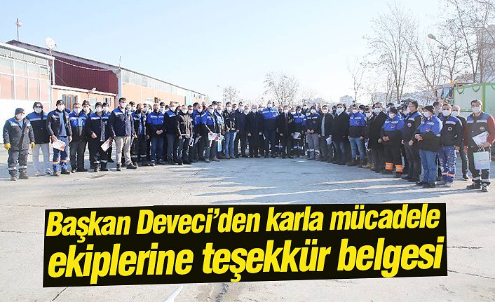 Başkan Deveci’den karla mücadele ekiplerine teşekkür belgesi