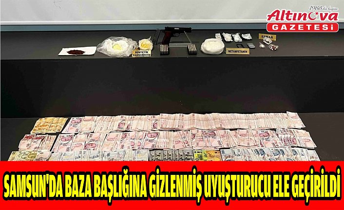 Samsun'un Atakum ilçesinde baza başlığına gizlenmiş uyuşturucu ele geçirildi, 4 şüpheli gözaltına alındı.
