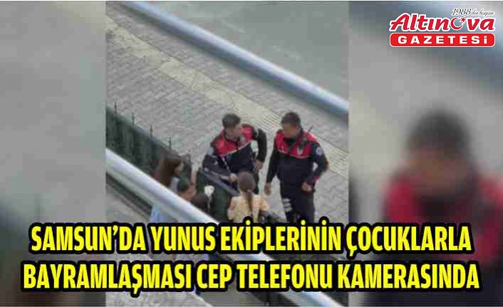Samsun'un Atakum ilçesinde yunus ekiplerinin çocuklarla bayramlaştığı anlar, cep telefonu kamerasıyla görüntülendi.