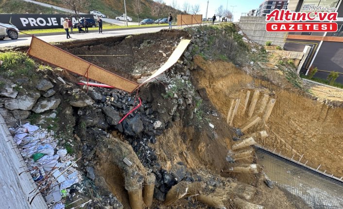 Yolda oluşan çökme nedeniyle inşaatın temeline doğru yaklaşık 10 metrelik toprak kayması oluştu. SAMSUN (AA)
