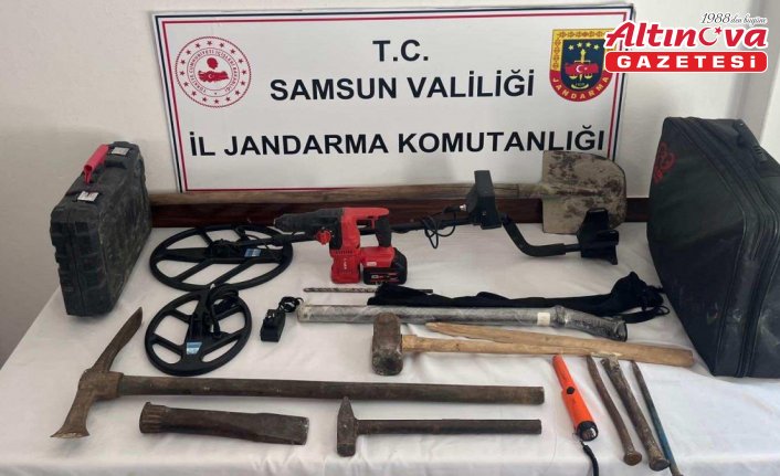 Kazıda kullanılan malzemelere el konulurken 3 şüpheli gözaltına alındı. SAMSUN AA