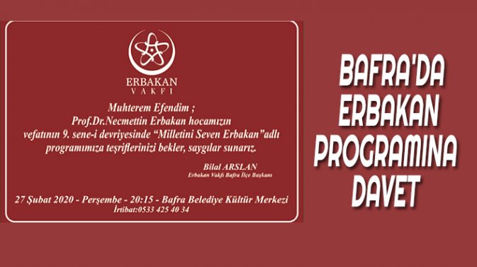 BAFRA'DA ERBAKAN PROGRAMINA DAVET