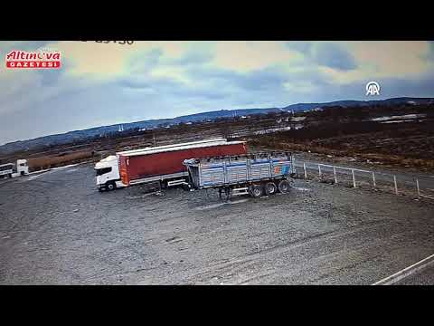 Bafra'da iki tırın çarpıştığı kaza anı kameraya yansıdı