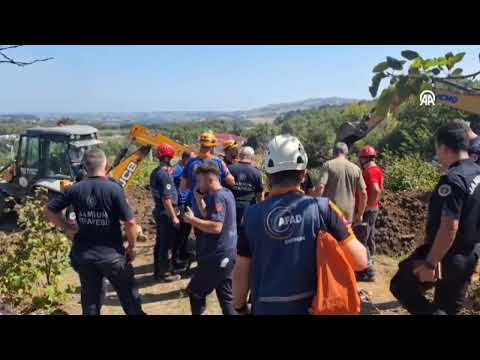Bafra'da kuyu açarken kayan toprağın altında kalan 2 kişinin kurtarılmasına çalışılıyor