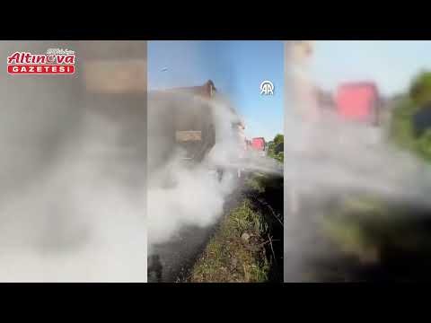 Bafra'da tırın lastiklerindeki yangın söndürüldü