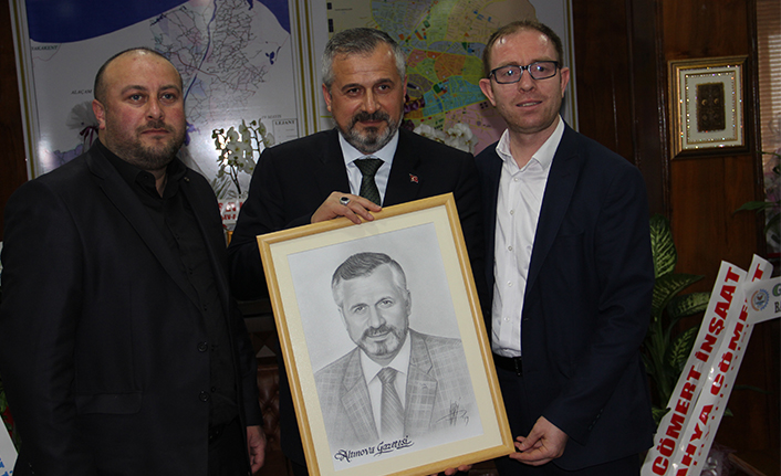 Yerel seçimlerde Bafralı vatandaşların yoğun teveccühü ile seçilen Bafra Belediye Başkanı Hamit Kılıç`a tebrik ziyaretleri devam ediyor. Altınova Gazetesi İmtiyaz sahibi Muhammet Söylemez ve Haydar Yıldırım öncülüğünde tüm gazete ekibi de Başkan Kılıç`a hayırlı olsun ziyareti gerçekleştirdi. Ziyaret sonunda Gazetemiz İmtiyaz Sahipleri Başkan Kılıç`a karakalem çalışması olan bir portresini hediye etti. Kılıç yapılan ziyaretten ve verilen hediyeden memnuniyetini dile getirerek gazetemize yayın hayatında başarılar diledi.