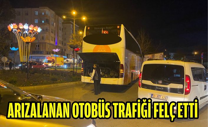 Bafra'da arıza yapan otobüs trafiği felç etti.