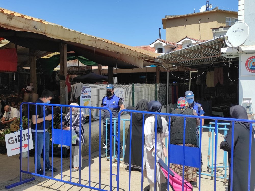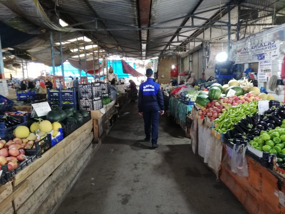 Pazar alanlarında ve iş yerlerinde kontrolü elden bırakmayan zabıta ekipleri, pazar esnafına ve vatandaşlara sık sık sosyal mesafe ile maskelerin doğru kullanımı uyarıları yaptı.