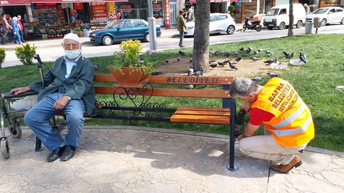Belediyenin kendi öz kaynakları ve ekibiyle atölyelerinde üreterek park ve meydanlarda kullanıma sunulan Sosyal Mesafe Bankları Bafralıların yoğun ilgisiyle karşılaştı.
