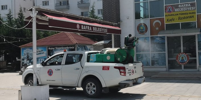 Bafra Belediyesi ayrıca yaz aylarının gelmesiyle park ve mesire alanlarımızı halk sağlığı ve huzurunu bozan kene, bit, pire vb. vektör popülasyonlarından arındırmak için ilaçlamalarını sürdürüyor.