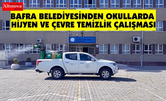 Bafra Belediyesi okullardaki temizlik ve hijyen çalışmalarının yanında okul bahçelerinde çevre temizliği ve bakım uygulamaları da yapılıyor.