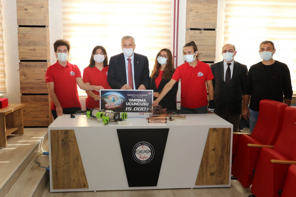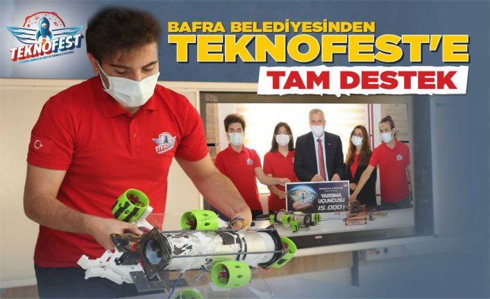 TEKNOFEST 2022’ye katılacak öğrencilere destek sağlamak üzere İlçe Milli Eğitim Müdürlüğü ile protokol imzalayan Bafra Belediyesi, ilçede bulunan ve hazırladıkları projelerle dikkat çeken, daha önceki TEKNOFEST organizasyonlarında Türkiye 3.lüğü elde eden Bafra Fen Lisesi'ne hazırladıkları projelerde lojistik destekte bulundu.