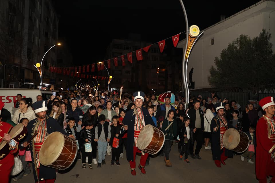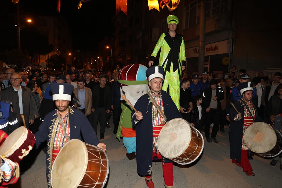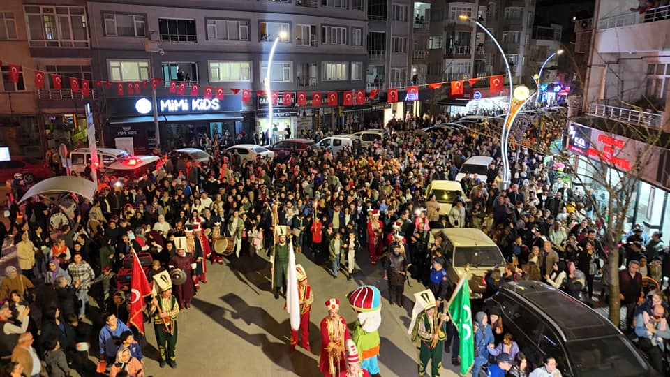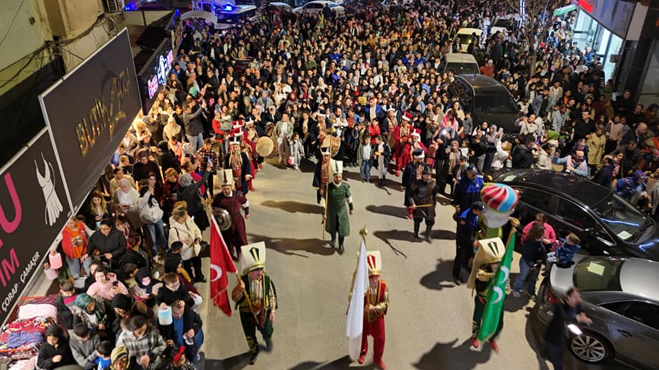 Çocuklara şeker ve kandil dağıtımın ardından, mehteran eşliğinde Gençlik ve Hükümet Caddesi boyunca yürüyüş yapıldı.